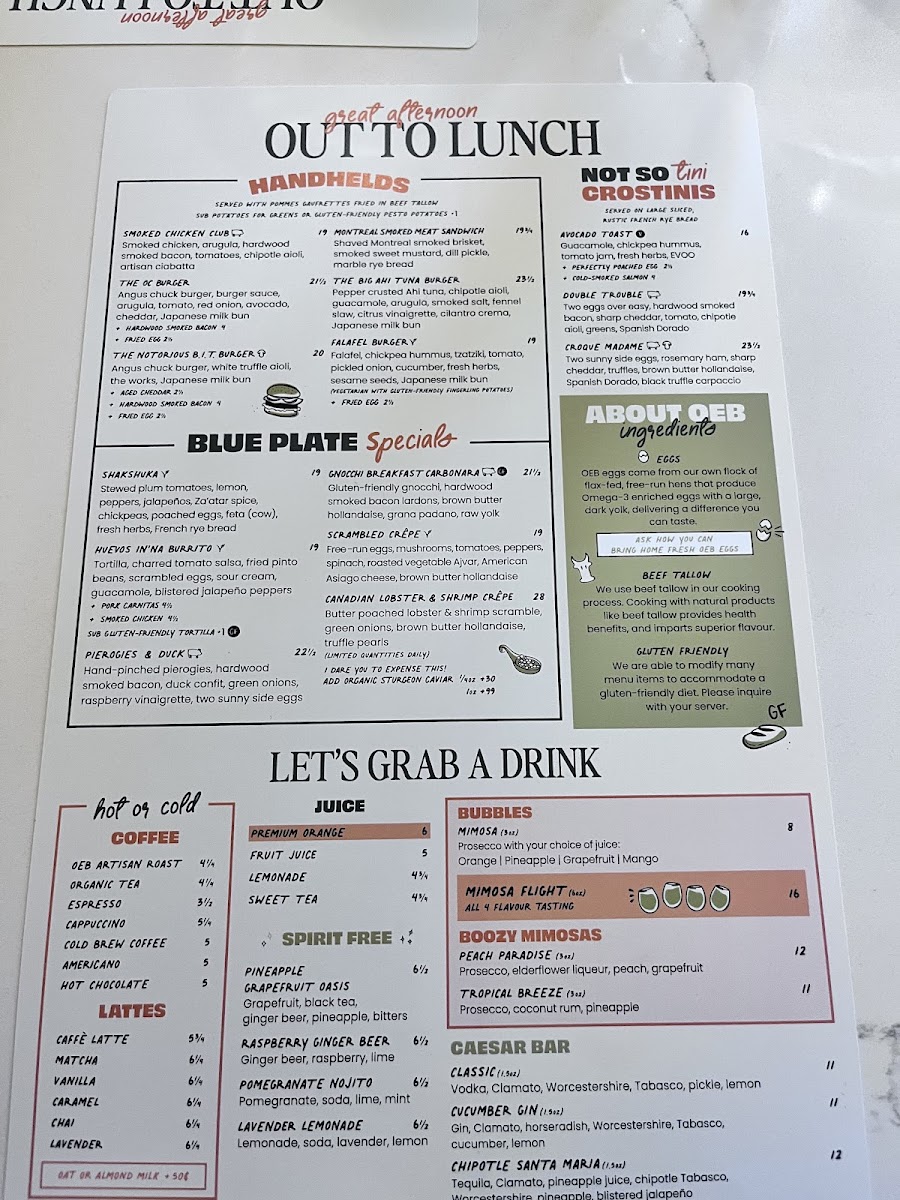 Signature dishes such as the avocado toast are renowned for their fresh ingredients and exquisite flavor. With an array of beverage options, including perfectly brewed espresso, OEB has established itself as a go-to destination for breakfast enthusiasts. While patrons have noted that portion sizes can feel modest, the quality and freshness of the food never disappoint.